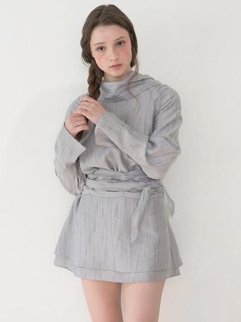 [쟈습] [2차 재입고] Leaf Scratch Tie Dress (Grey)
