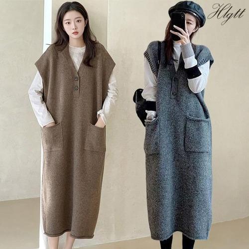 [헬리꽁땡] 55 88 2종세트 라운드골덴원피스 캐주얼원피스 니트원피스 엄마옷 임산부봄원피.._P408157216