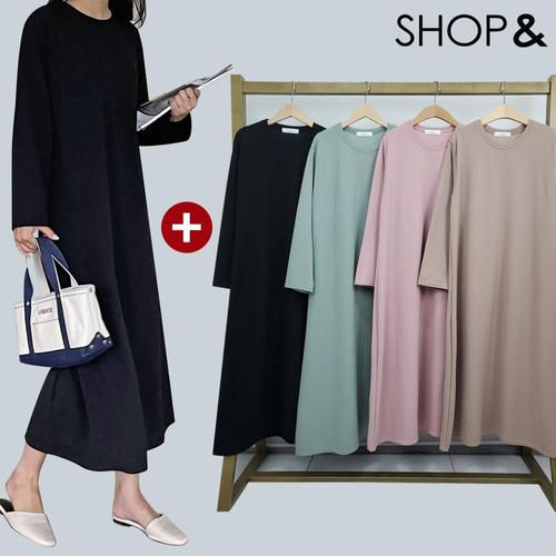 [샵앤][샵앤] [2종세트] 국산 여성 라운드 무지 롱원피스 무료배송