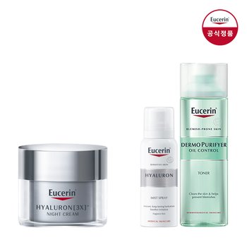 유세린 하이알루론 3X 나이트 크림 50ml 2개 + 더모 퓨리파이어 오일 컨트롤 토너(유통기한 26년 1월 1일) 2개