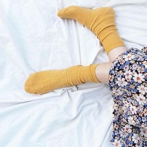 [셀럽하우스]양말 UHHE7167 골지 긴목 머스타드