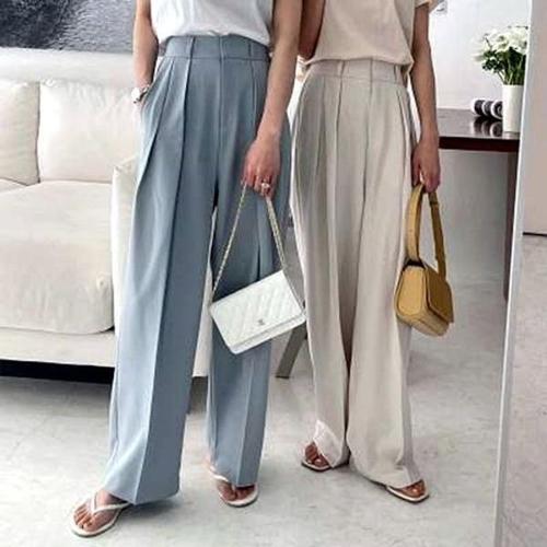 베이직 바지 린넨바지 9부바지 소재감 플리츠바지 허 WD40362