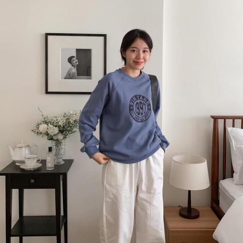 여자 신학기 라운드 스템프 디자인 맨투맨