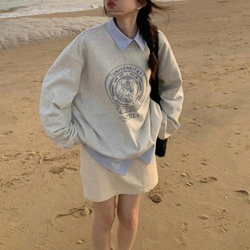 레터링티셔츠 맨투맨 스탬프 데일리 여자 오버핏 (3Wf4p)