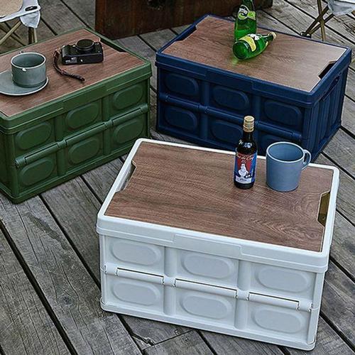 프리미엄 우드상판 캠핑 접이식 수납박스 차량 트렁크 정리함