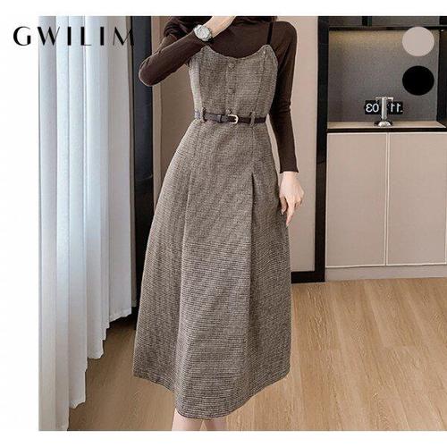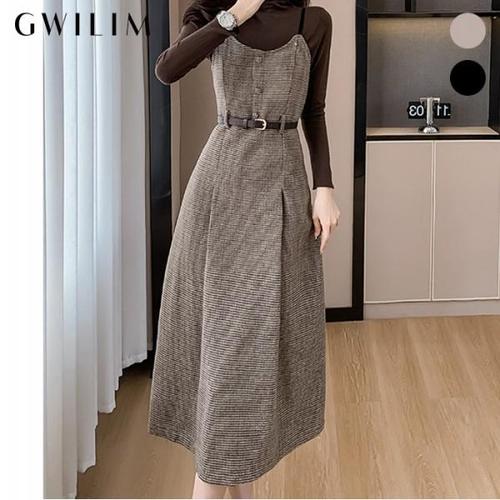 [귈림](귈림) 울혼방 A라인 롱원피스 + 소프트터치 이너 터틀넥 티셔츠(GBWSE404P)