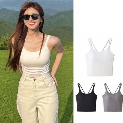 [셀러허브_여성트랜드패션]브라렛 민소매 이너 두줄 크롭 끈 티셔츠 캡나시 나시