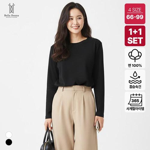 1+1 벨라도나 여성 건절기 데일리 무지 긴팔면티셔츠 이너티 2컬러 66-99 BLDN2602TL