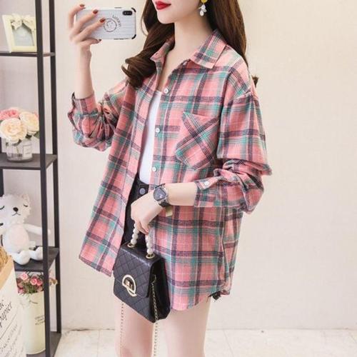 걸스 데일리 체크패턴 오버핏복고 와이셔츠 WFK1YX1