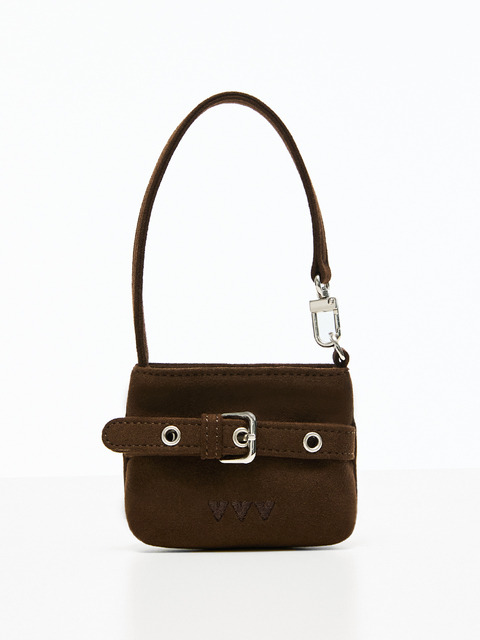 [브이브이브이] 스웨이드 버클 미니 호보 토트백 키링 _ 다크 브라운