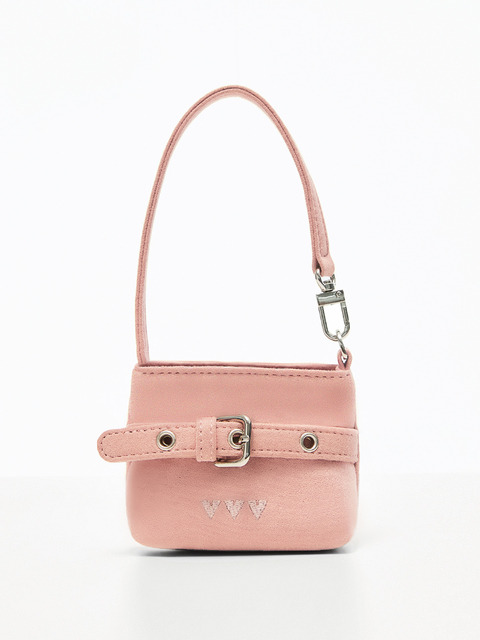 [브이브이브이] 스웨이드 버클 미니 호보 토트백 키링 _ 핑크