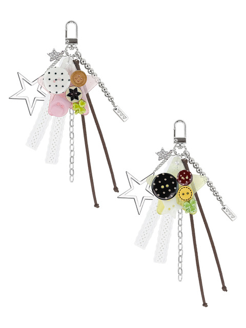 [브이브이브이] 글리터 스타 믹스 버튼 키링