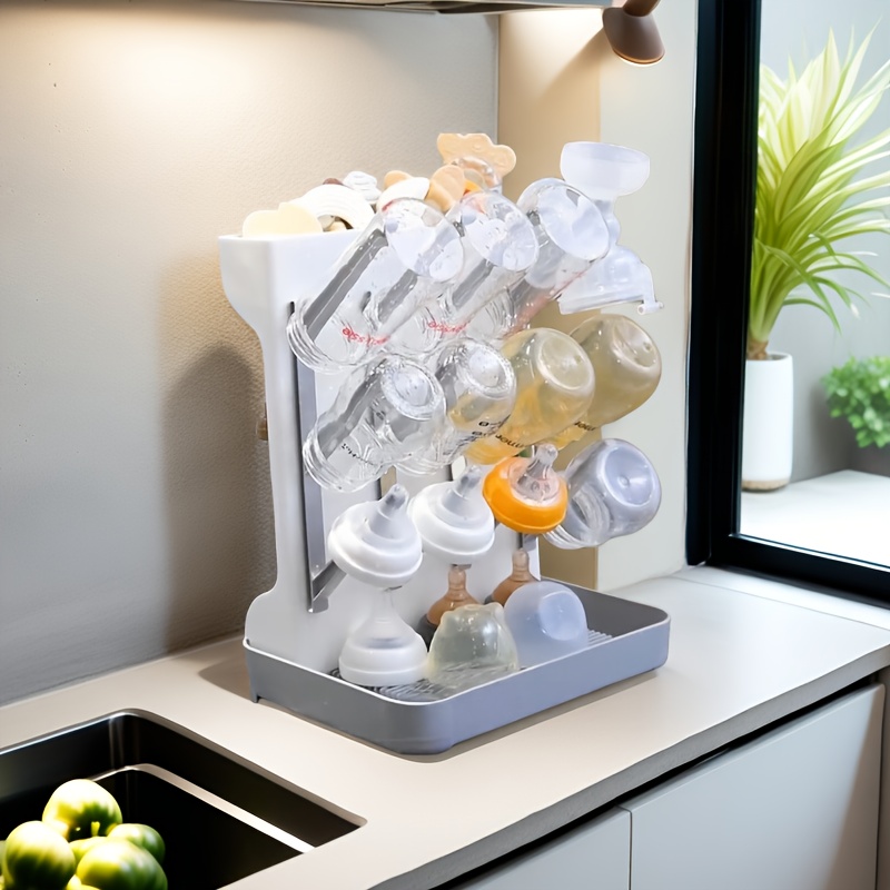 TEMU 새로운 플라스틱 가정용 데스크탑 젖꼭지 건조대, 병 물빠짐대, 컵 다층 거꾸로 건조 랙