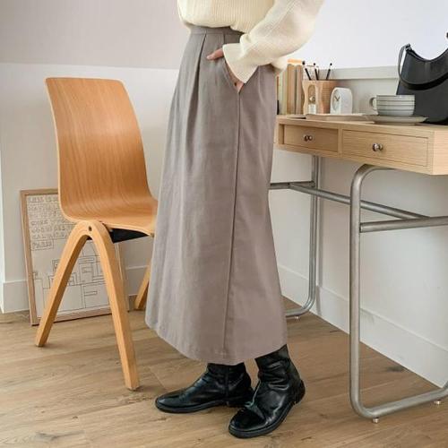 [다잇템]여자 가을 이중 핀턱 깔끔한 데이트룩 롱스커트