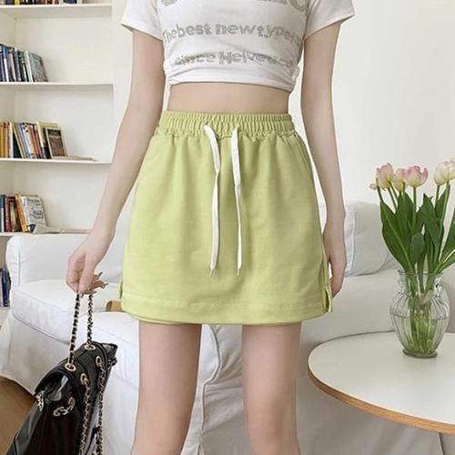 [신상오픈런]슬림핏 츄리링 키작녀 허리끈 이중 치마바지