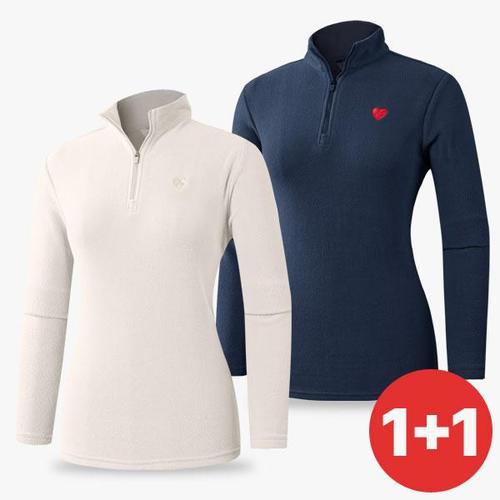이지바이 1+1 스위티 여성 프리미엄 기모플리스 반폴라 긴팔 티셔츠(XS3OP3LT075W)