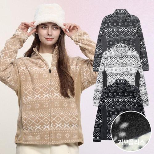 [이지바이]이지바이 스노우베리 여성 겨울 눈꽃 패턴 기모 플리스 집업 자켓(W4WJ16)
