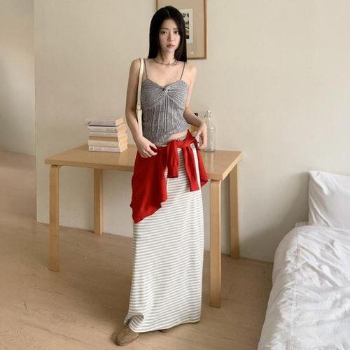 [신상오픈런]여성용 일상 이지 내추럴 스트라이프 롱 스커트