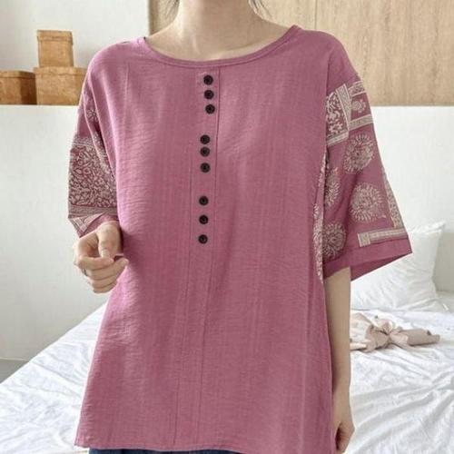 샵앤) 국산 여성 라운드넥 단추 2컬러 인견 반팔 블라우스 YF-WBL-20666-퍼플