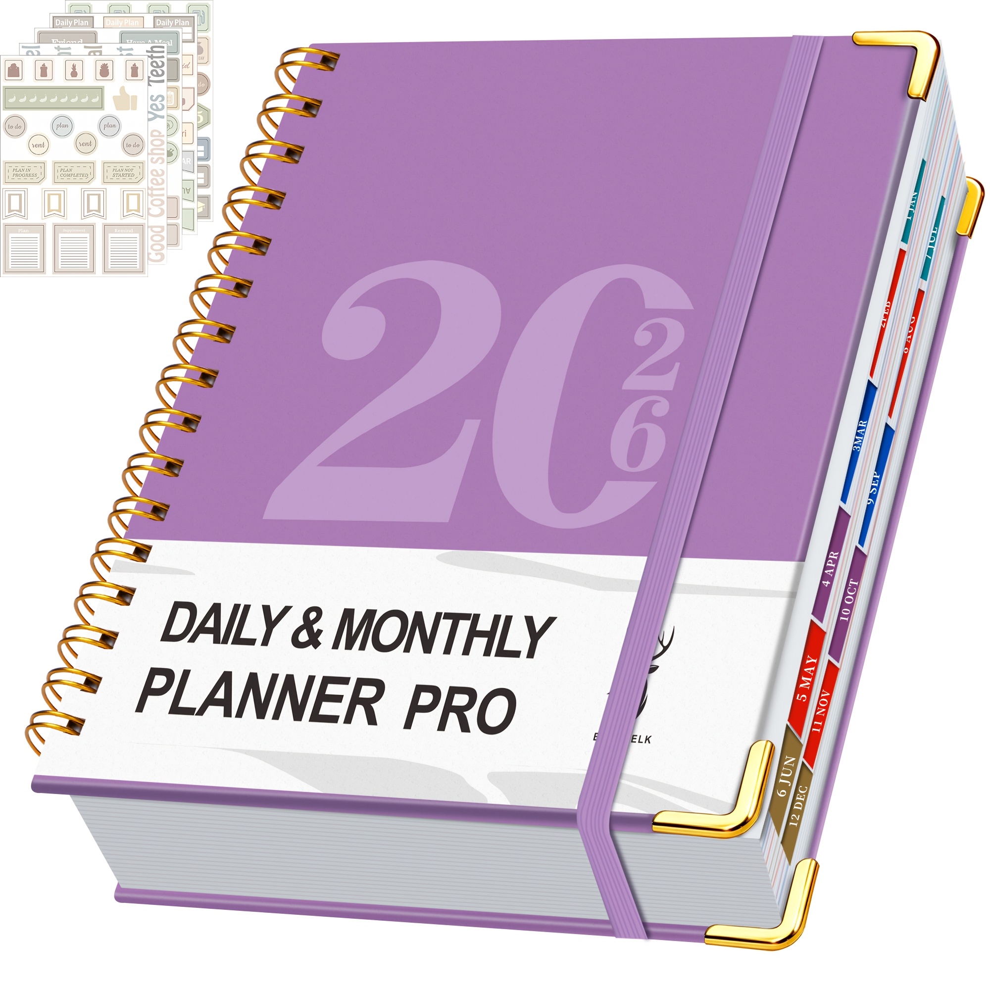 TEMU 2026년 스파이럴 바운드 플래너 | 400페이지, 일일 & 월별 계획, 날짜 표기 하드 커버, 합성 인조 가죽, 효율적인 스케줄 & 할 일 목록, 자아 통제력 & 시간 관리 - BRAVE ELK|달력|달력|캘린더