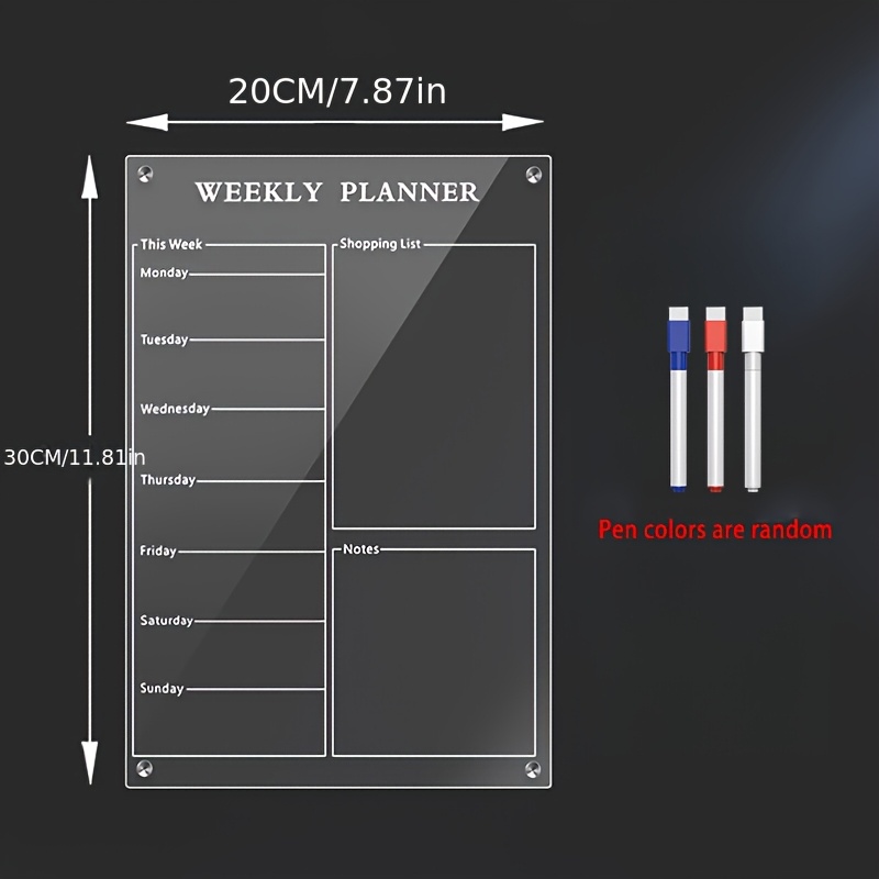 TEMU 냉장고용 자석 아크릴 주간 플래너 - 쓰기, 지우기 및 스케줄 정리 용이, 3가지 색상의 마커 포함 - 가정 및 사무실 사용에 적합, 냉장고 액세서리