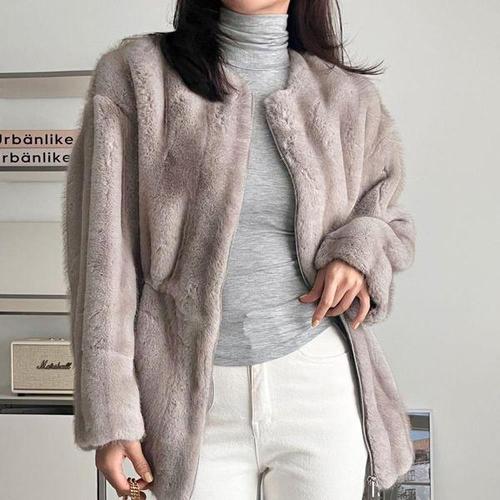 [에이치플러스몰]인조밍크 퍼자켓 밍크코트 우아한 퍼코트
