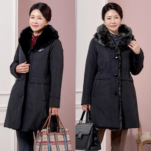 애비뉴투지 엄마옷 보석 인조밍크 페이크퍼 후드 여성 겨울 하프 코트 J02650