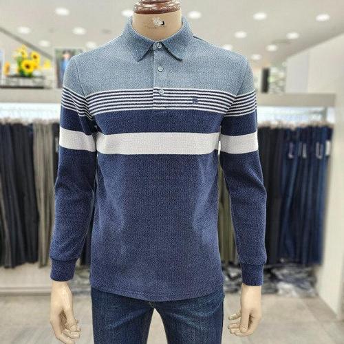 [피에르가르뎅](모다인천점)블루 스트라이프 실크 카라 티셔츠/PQTS2409_IC