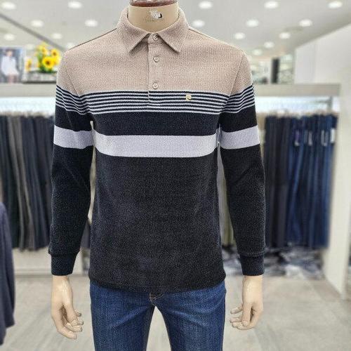 [피에르가르뎅](모다인천점)네이비 셔닐 스트라이프 안감 융기모 티셔츠/PPTS4404B_IC