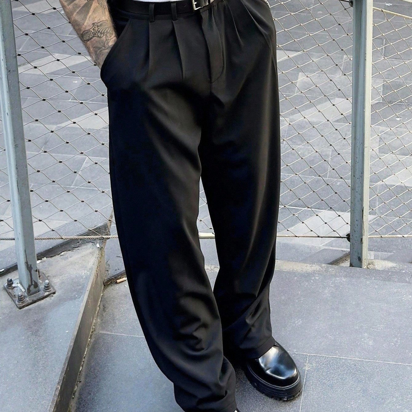 TEMU 남성 드레스 팬츠, 패셔너블 캐주얼 정장용 블랙 슬랙스, 우아한 드레이프 효과, 편안한 착용감, 다양한 파티와 휴가에 적합