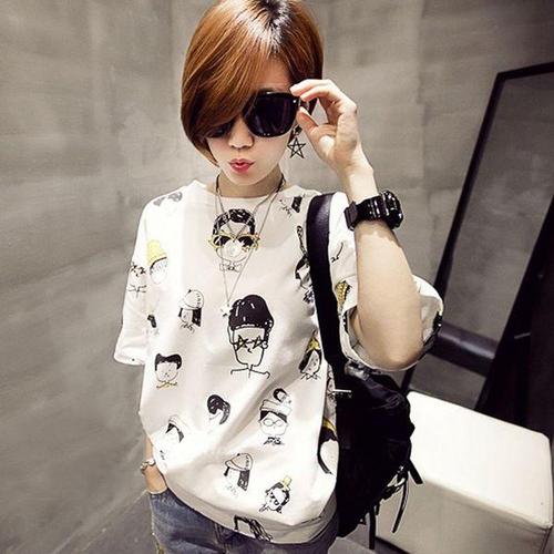 901M 일러스트 반팔 티셔츠 여자티셔츠