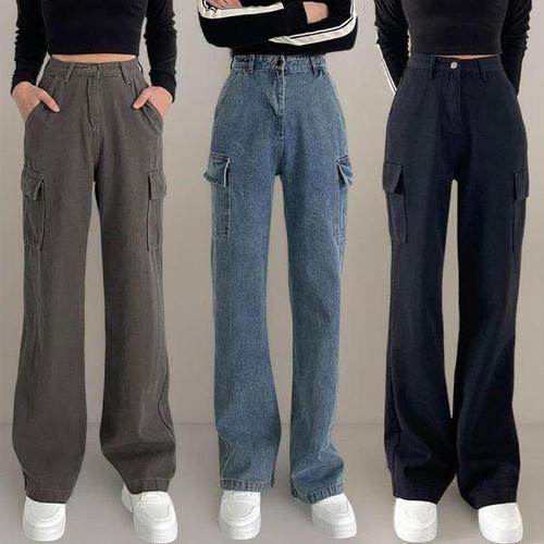[신상오픈런]여성 일자핏 와이드 링사 데님 면바지 가을용