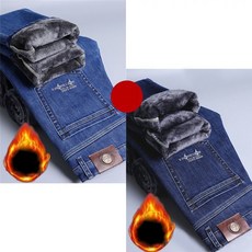 남성 슬림 봄 일자핏 청바지 겨울 보온 밍크털팬츠 소프트 일자 기모 하이웨스트 캐주얼 데님 힛템