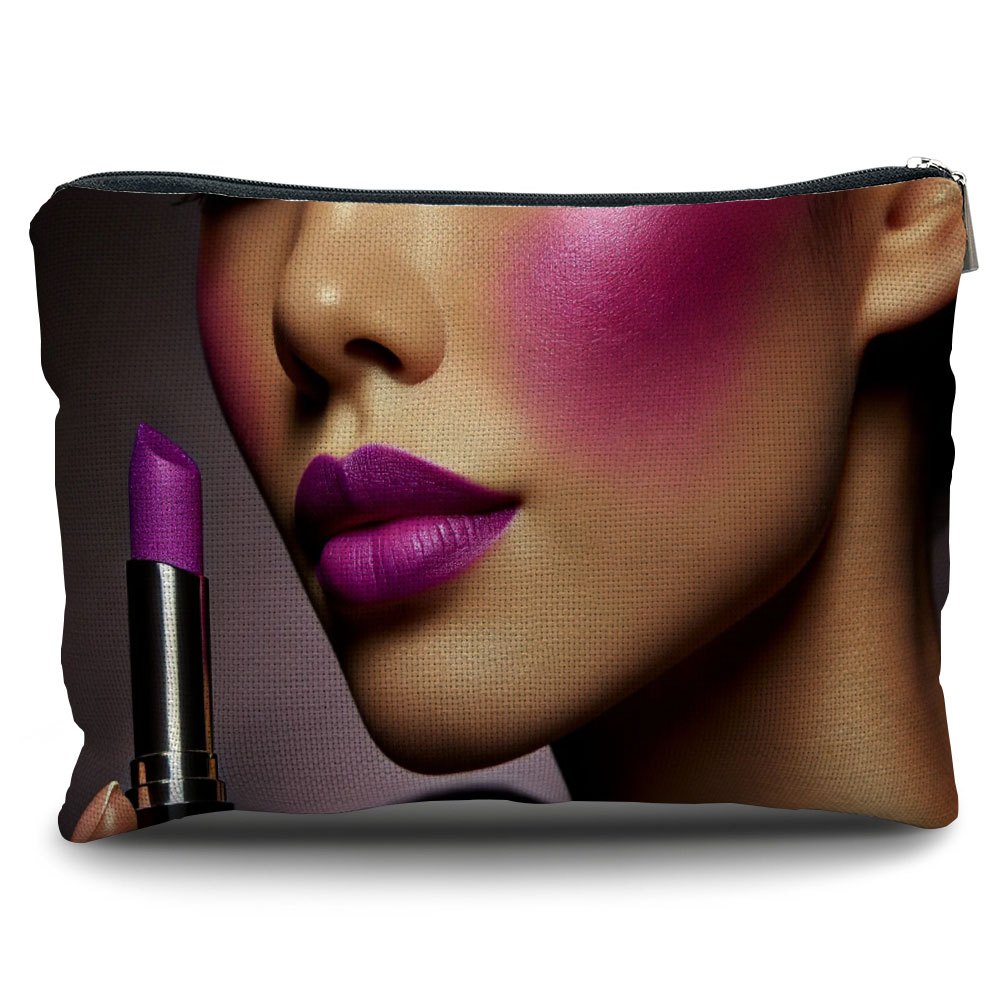TEMU 1개 밝은 보라색 (립스틱 색상, 디자인 특징이 다를 수 있음) 여성용 휴대용 리넨 메이크업 파우치 - 재사용 가능한 지퍼 화장품 케이스, 컴팩트 여행 정리함, 크리스마스, 새해|립스틱