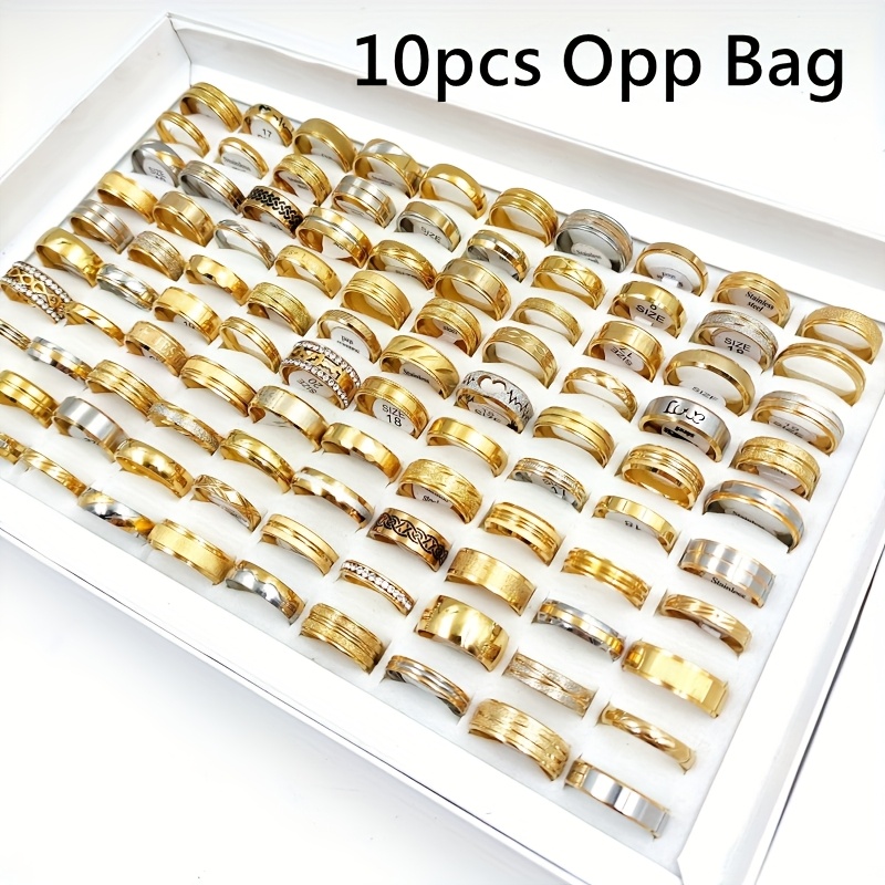 TEMU 10/20/30개/세트 트렌디한 골드 컬러 스테인리스 스틸 반지 남녀공용 도매 혼합 고급 반지 매력 기념일 주얼리 선물, 패션 액세서리,도매 반지,우아한 주얼리,시크한 디자인,광택 마감,내구성 있는 주얼리,혼합 링,커플 선물,주얼리 애호가
