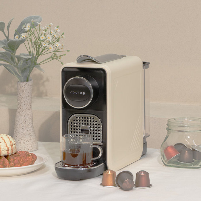쿠잉 캡슐커피머신 ECC-1350 크림 커피머신기 미니 자동 가정용