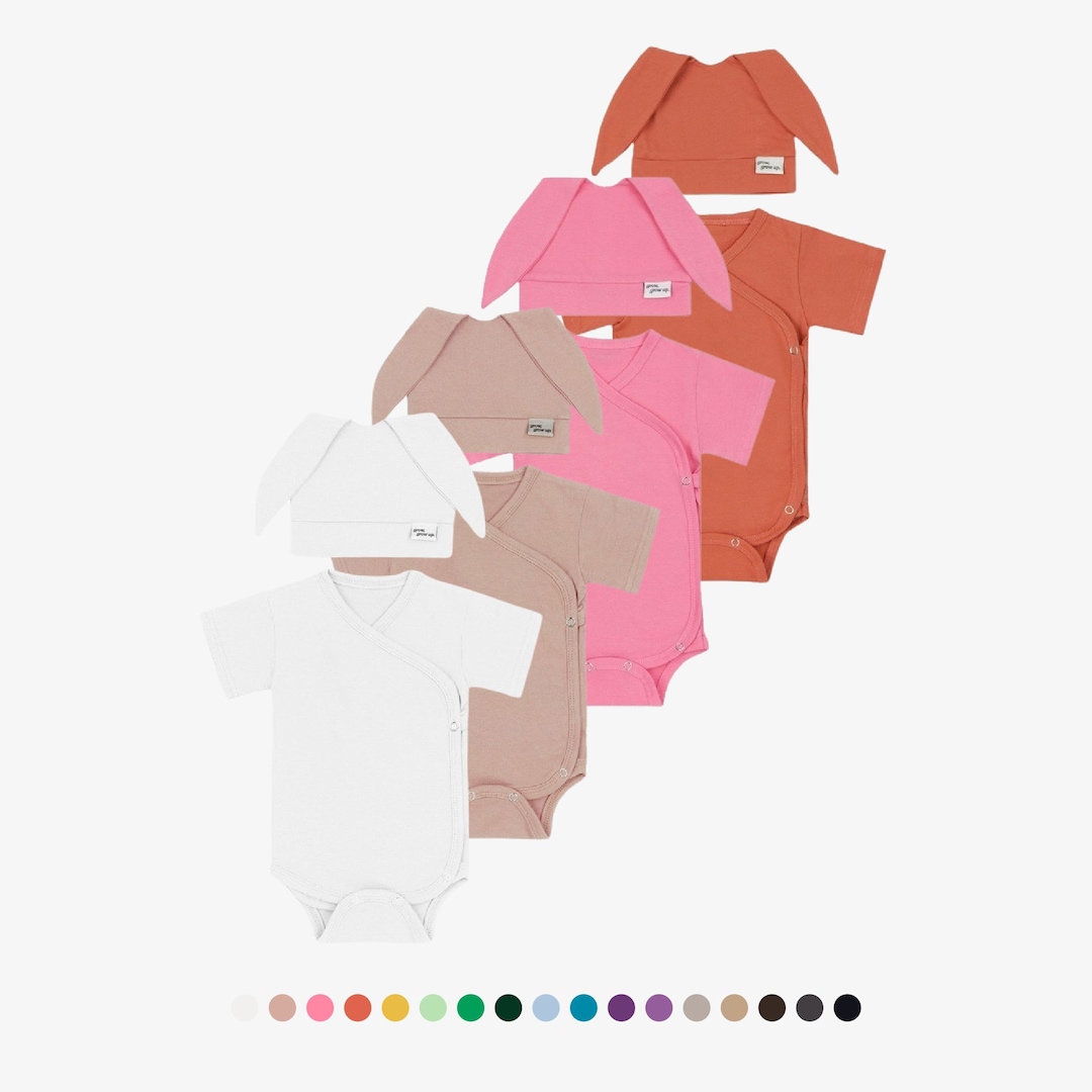 출산선물 임신선물 신생아옷 (반팔) 배냇슈트&신생아모자 17color