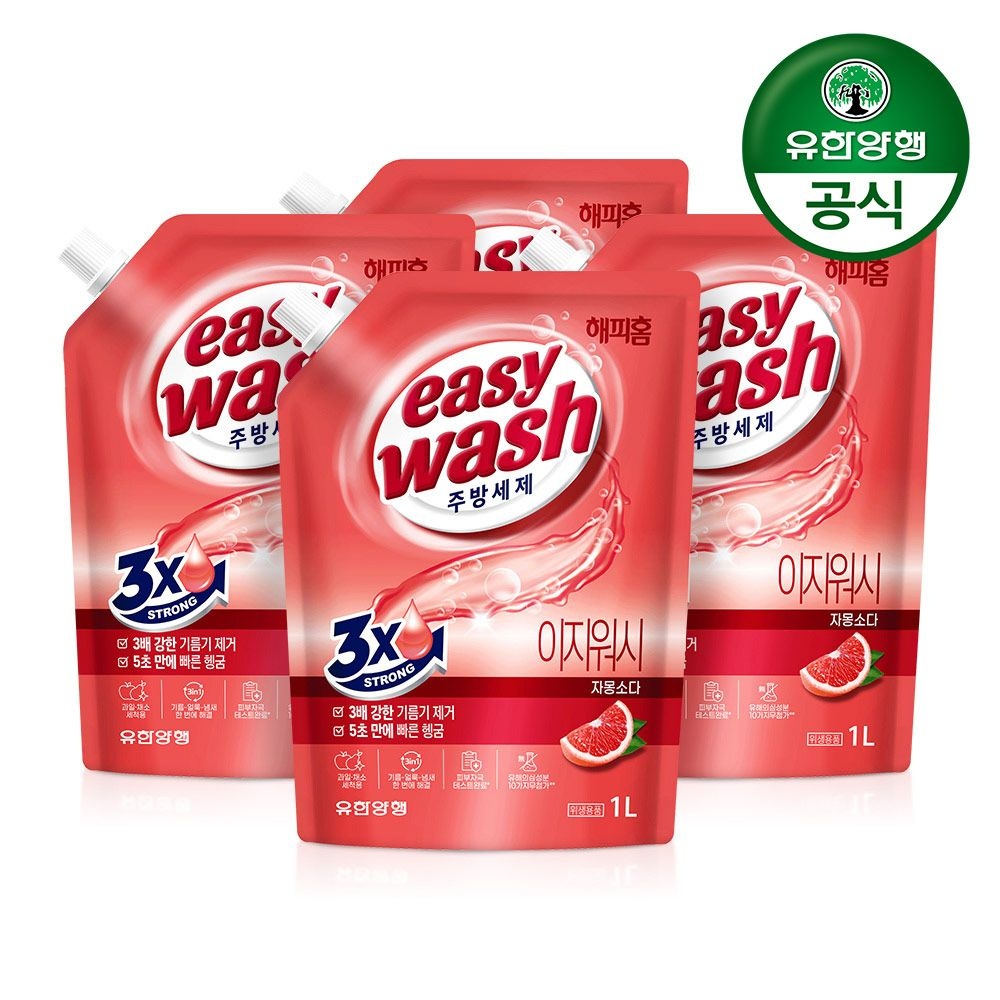 해피홈 이지워시 주방세제 리필 자몽소다 1L X 3개