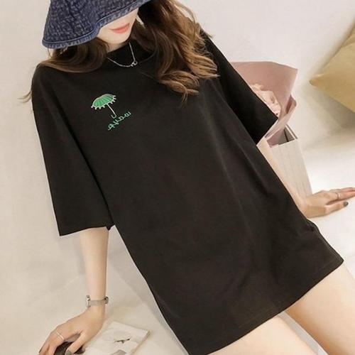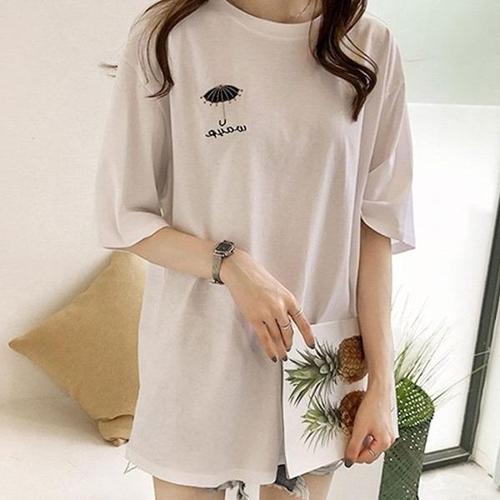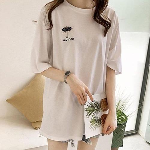 [엄지척]여성 우산 자수 루즈핏 롱 반팔 티셔츠_19615242_667501