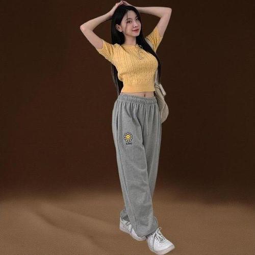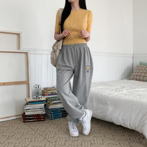 [신상오픈런]여성용 꽃무늬 자수 편안한 조거팬츠