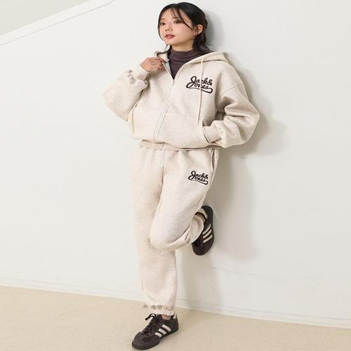 [WPBG](세트) 레터링 자수 기모 후드 집업 & 기모 조거 밴딩 팬츠 set_4color