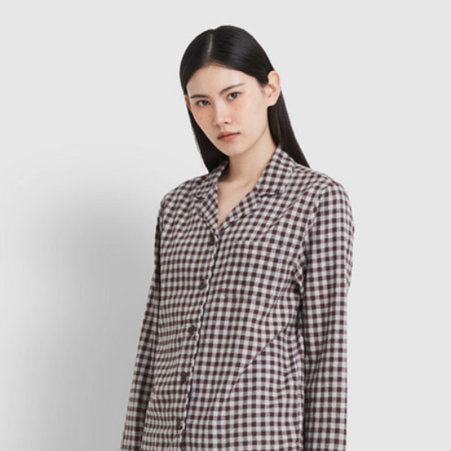 여 퓨어 코튼 긴팔 파자마 원피스 (2 colors)