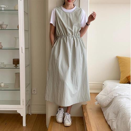 [다잇템]여성 슬리브리스 드레스 옆면 캐쥬얼 롱 스트링