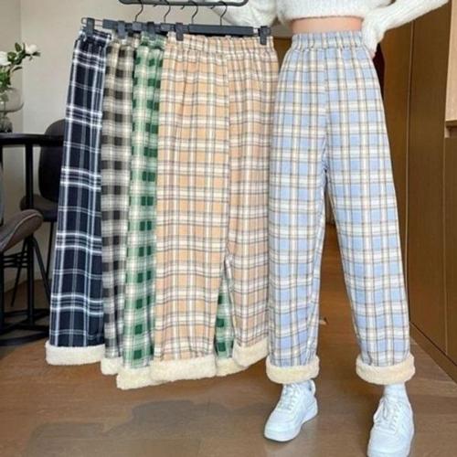체크 극세사 잠옷바지 남성 여성 기모 수면바지 커플 파자마 홈웨어 하의