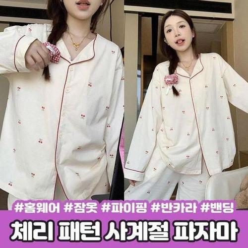 [셀러허브_여성트랜드패션]ONM 2826 허밍 체리 파자마 상하세트 패턴 파이핑