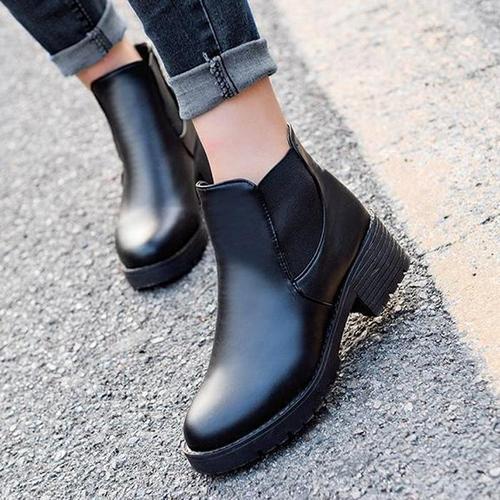 [QN676Y05]여성통굽 앵글부츠 워커신발 검정구두 가을패션