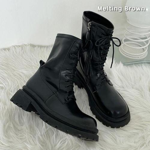 아이위크 봄 가을 딥컬러 키높이 여자 청키 슈즈 여성 통굽 워커 부츠