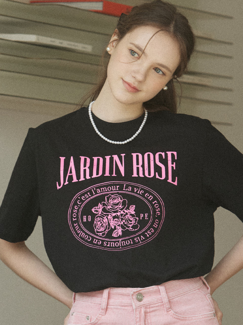 [아워호프] 쟈뎅 로즈 티셔츠 - 블랙
