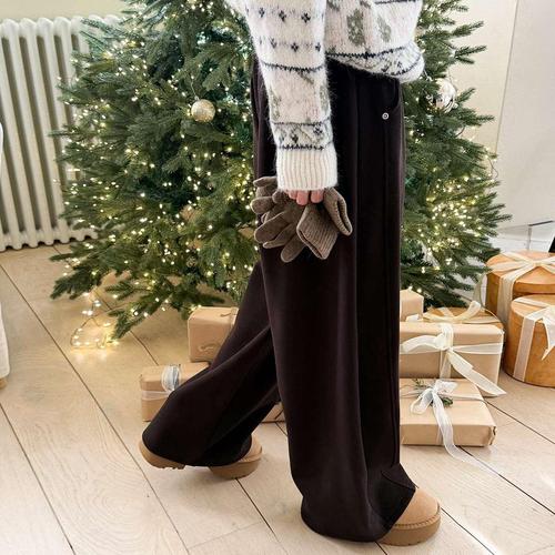 [잇수다] 글라우 밍크 기모 절개 와이드 니트 밴딩 팬츠