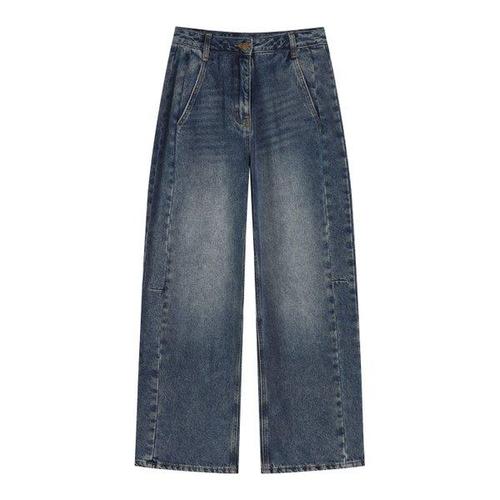 AOKADA 남성 세미 와이드 청바지 가을 절개라인 밴딩 워싱 데님 팬츠